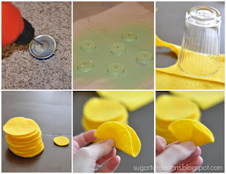 3) Corte o feltro em círculos. Para ajudar, pode usar um copo para marcar os círculos