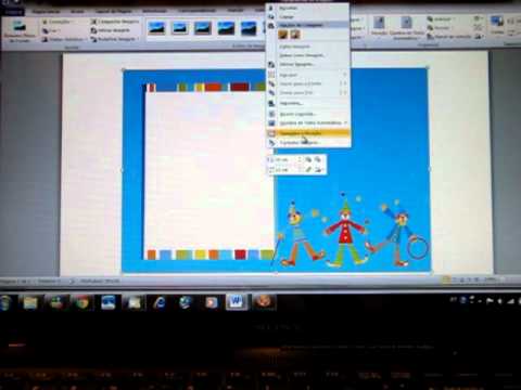 4) Inserir a imagem de moldura no Word em “inserir – imagem”. Clicar em cima da moldura como o botão direito do mouse, clicar em “propriedades” depois em “lay out” e selecionar “atrás”. Depois, fazer o mesmo procedimento com a foto. Assim, você pode colocar a foto em cima da moldura, e dimensionar as duas como quiser. Este vídeo abaixo ensina a fazer no Word: