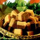 a massa escura, cobrindo-a completamente. Deixe esfriar e corte em dadinhos de 2 cm de