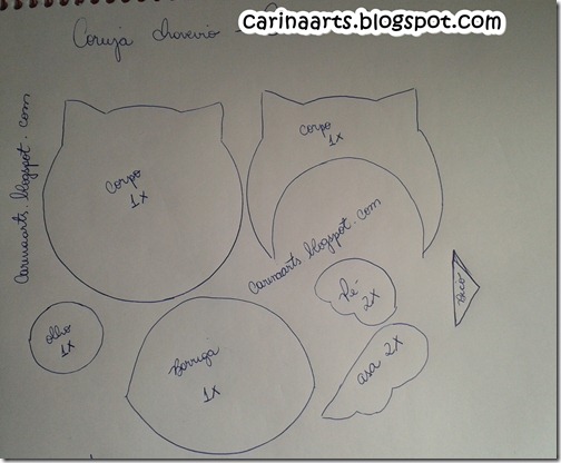 Obs.: eu usei a tampa de um copinho de requeijão como base da minha corujinha, você pode aumentar ou diminuir o molde, salvando a imagem e copiando para o word, lá você poderá alterá-la, conforme o tamanho que desejar..